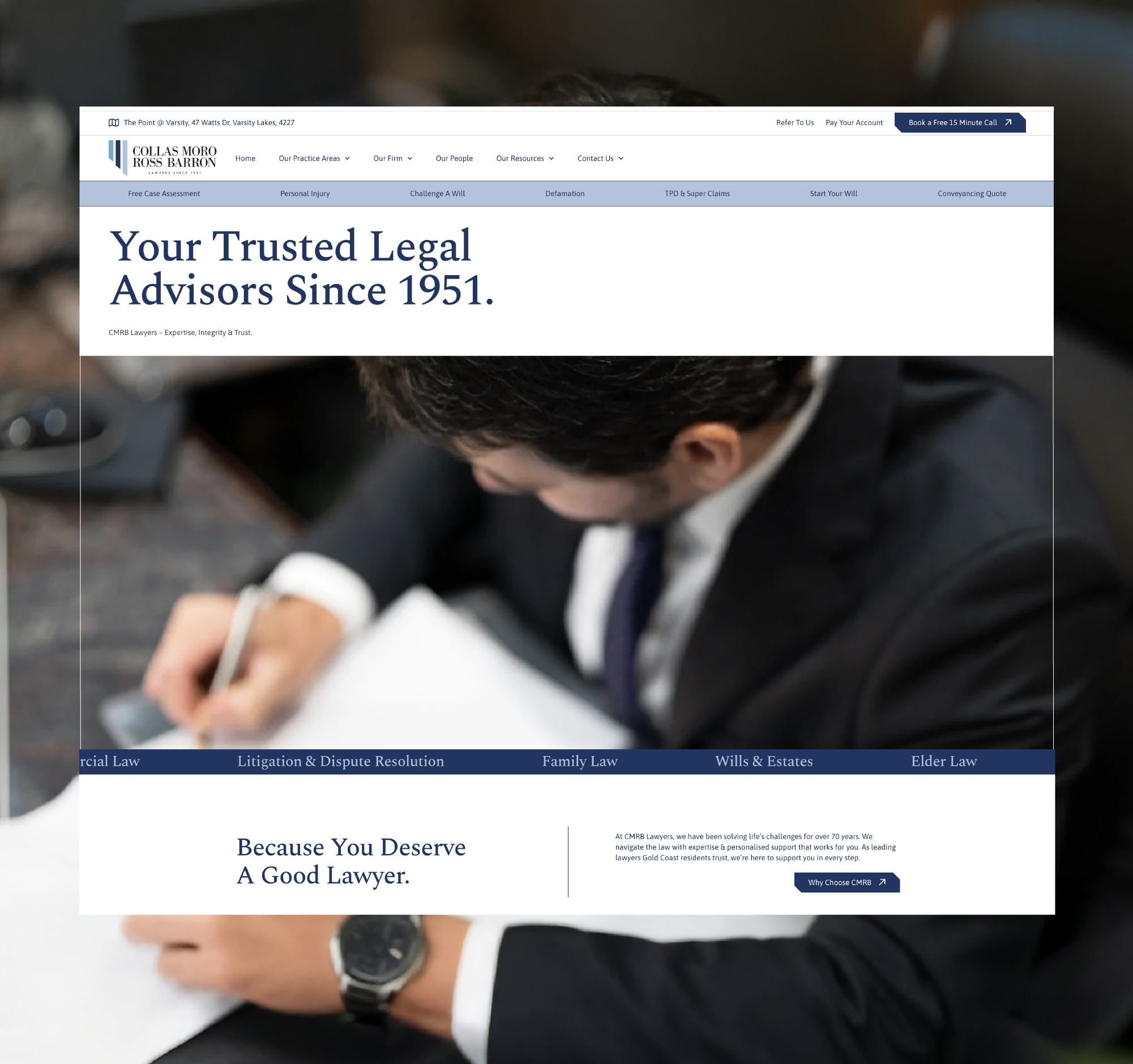 Established in 1951, Collas Moro Ross Barron Lawyers is a respected full-service firm known for trusted advice, strong community roots and consistently high standards of legal expertise.